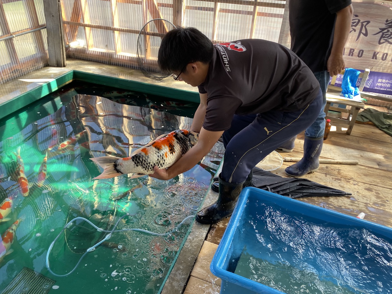 Today we did a Sansai Harvest at Shintaro where some of our clients from America wanted to get involved, and they did. Some great Koi out of this pond.