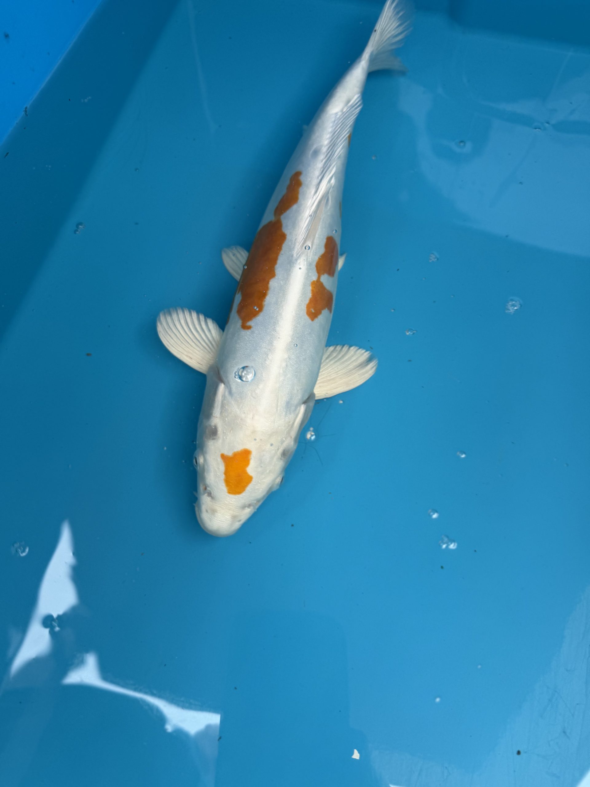 A popular fish you don’t see many of when they are bigger. A really nice example and the yellow isn’t anywhere near fully yellow yet. Stunning Koi.